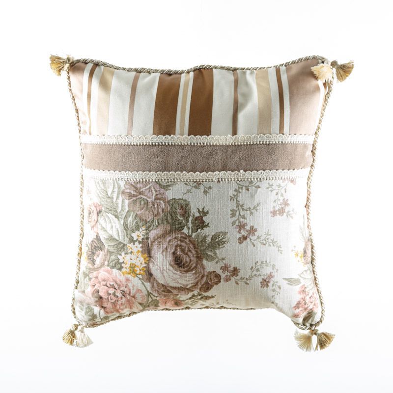 Оригинальная дизайнерская наволочка на подушку 45х45 см. Декорирована витым шнуром, ажурной тесьмой и кисточками. Потайная молния расположена в нижнем шве. Декоративные подушки сделают акцет на цветовой гамме Вашего помещения, подчеркнут особенности интерьерного стиля или тематику оформления. Внимание! Подушка-вкладыш или синтепон приобретаются отдельно.