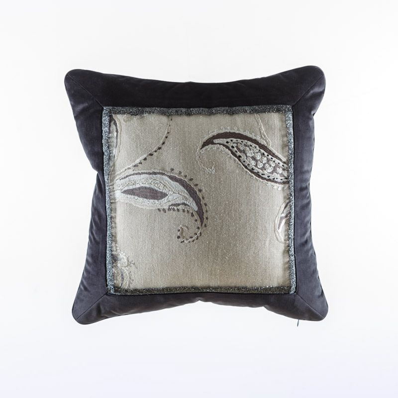 Оригинальная дизайнерская наволочка 45х45 см. Выполнена из жаккарда и бархата и декорирована узкой бахромой и кантом. Потайная молния расположена в нижнем шве. Декоративные подушки сделают акцет на цветовой гамме Вашего помещения, подчеркнут особенности интерьерного стиля или тематику оформления. Внимание! Подушка-вкладыш или синтепон приобретаются отдельно.