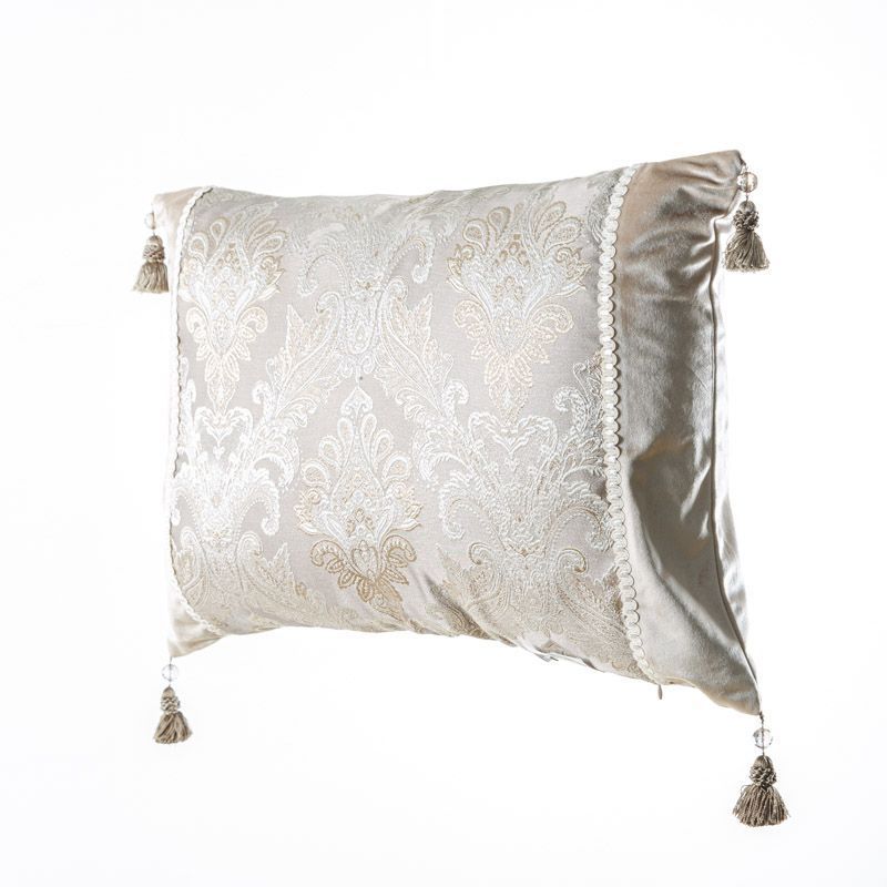 Оригинальная дизайнерская наволочка на подушку 60х45 см. Выполнена из бархата и жаккарда и декорирована ажурной тесьмой и кисточками. Потайная молния расположена в нижнем шве. Декоративные подушки сделают акцет на цветовой гамме Вашего помещения, подчеркнут особенности интерьерного стиля или тематику оформления. Внимание! Подушка-вкладыш или синтепон приобретаются отдельно.