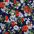 Плотное полотно синего оттенка с красивым ярким цветочным принтом в стиле известного бренда, не тяжелое, гибкое, великолепно держит форму и хорошо тянется. Прочное, практичное, долговечное, совершенно не мнется. Отлично сохраняет тепло. Подойдет для пошива пальто, жакетов, курток, жилетов, бомбера, юбки или шорт.
