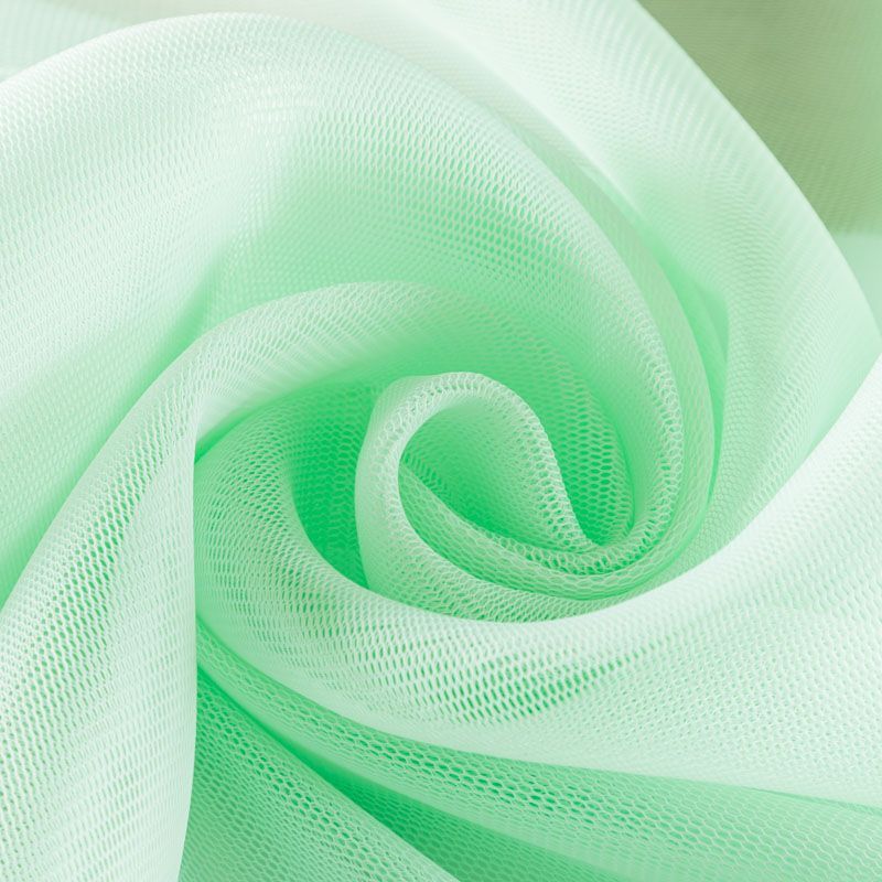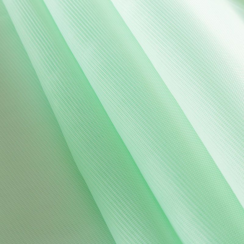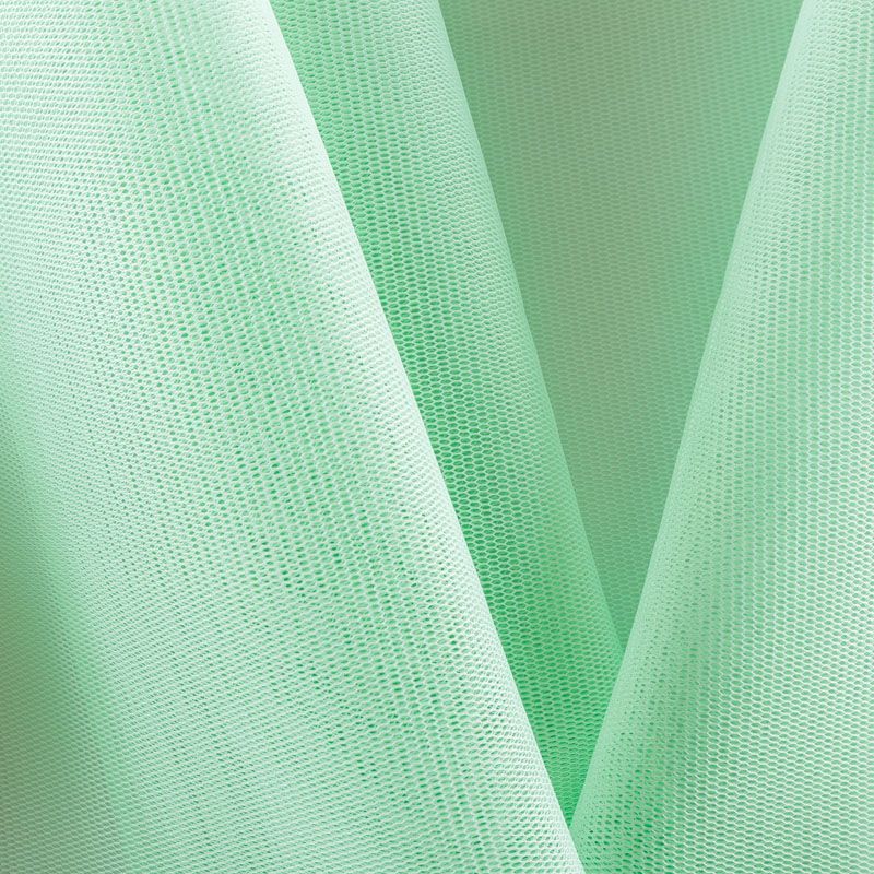 Объемный, эластичный материал мятного оттенка, состоящий из двойной мелкой сетки, по форме напоминающей соты. Упругое, мягкое с полупрозрачной фактурой полотно, пластичное и довольно прочное. Хорошо тянется, легкое и комфортное. Отлично держит форму. Рекомендуется для пошива объемных изделий или элементов: эксклюзивного жакета, бомбера, платья, юбки.