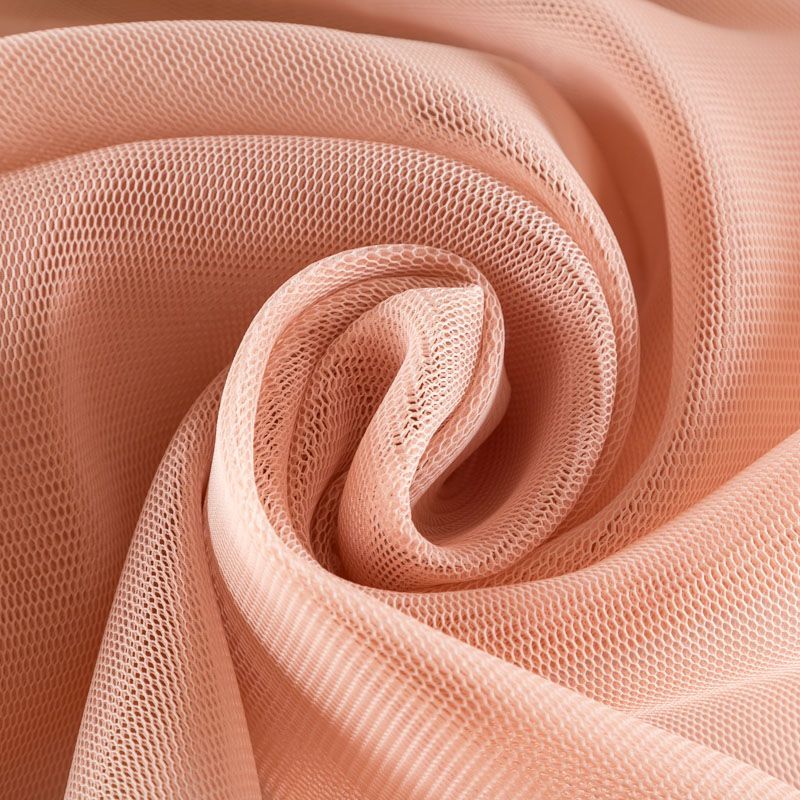 Объемный, эластичный материал персикового оттенка, состоящий из двойной мелкой сетки, по форме напоминающей соты. Упругое, мягкое с полупрозрачной фактурой полотно, пластичное и довольно прочное. Хорошо тянется, легкое и комфортное. Отлично держит форму. Рекомендуется для пошива объемных изделий или элементов: эксклюзивного жакета, бомбера, платья, юбки.