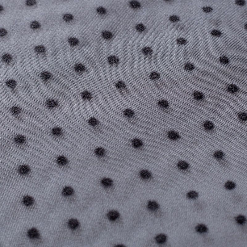 Легчайший, изящный, воздушнный и прозрачный материал с благородной переливчатой поверхностью. Прекрасно держит форму в заложеных складках. На лицевой стороне объемные декоративные элементы из флока диаметром 0.5 см. Подойдет для создания в изделии декоративных деталей, новогодних костюмов, нарядных платьев, блузок.