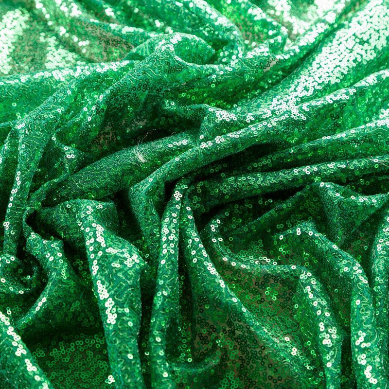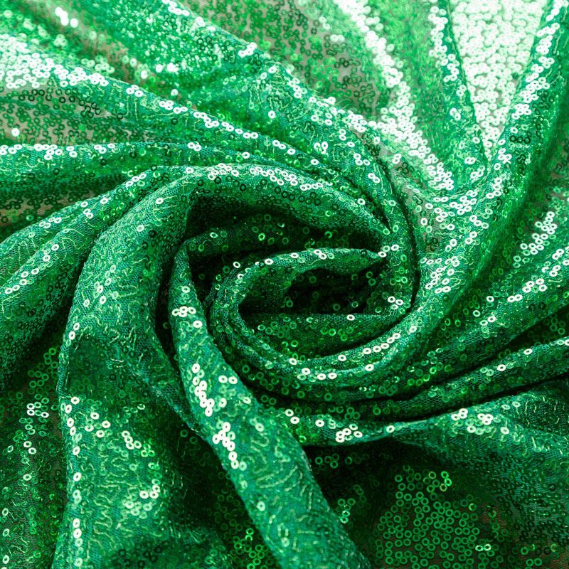 Блестящие пайетки в зеленом оттенке. Мелкие, размером около 3 мм, расположены в хаотичном порядке. Основа - мягкая и эластичная сетка.  Ткань полупрозрачная, может потребоваться подклад. Подойдет для вечернего, коктейльного платья, юбки, нарядных детских изделий, танцевальных и сценических костюмов.