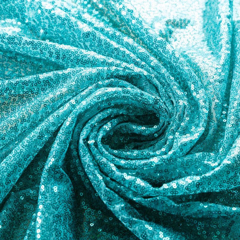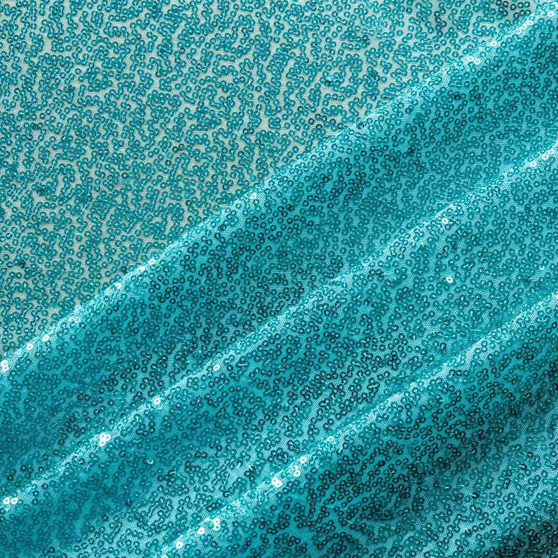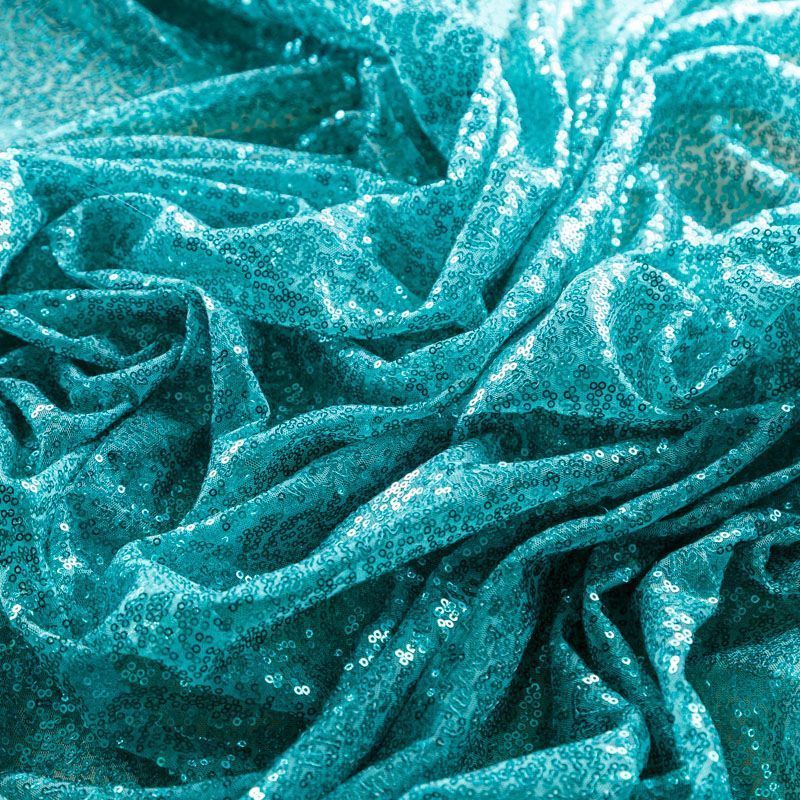 Блестящие пайетки в зеленом оттенке. Мелкие, размером около 3 мм, расположены в хаотичном порядке. Основа - мягкая и эластичная сетка. Ткань полупрозрачная, может потребоваться подклад. Подойдет для вечернего, коктейльного платья, юбки, нарядных детских изделий, танцевальных и сценических костюмов.