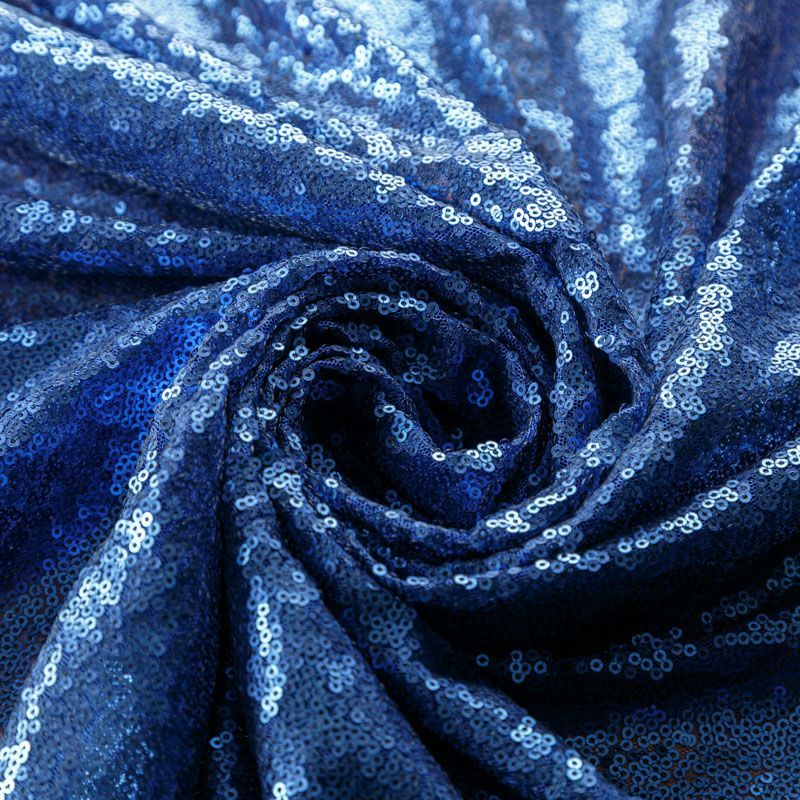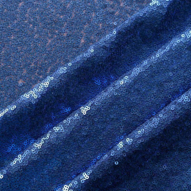 Блестящие пайетки в синем оттенке. Мелкие, размером около 3 мм, расположены в хаотичном порядке. Основа - мягкая и эластичная сетка.  Ткань полупрозрачная, может потребоваться подклад. Подойдет для вечернего, коктейльного платья, юбки, нарядных детских изделий, танцевальных и сценических костюмов.