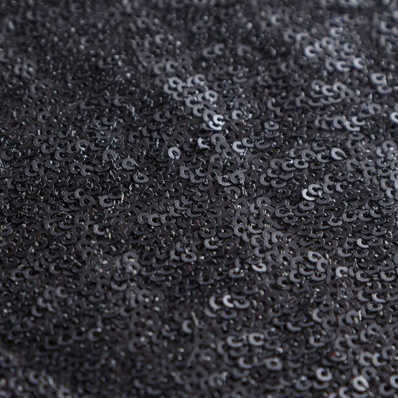 Тонкая эластичная сетка черного цвета по всей поверхности усеяна мелкими полуматовыми пайетками в тон основе. Ткань очень хорошо драпируется, красиво переливается, пластичная и эластичная и в длину, и в ширину, благодаря чему изделия получаются комфортными и отлично сидят по фигуре. Пайетки — идеальный материал для праздников и вечеринок. Из них получится эффектное платье, жакет, боди, топ, туника, юбка или комбинезон.