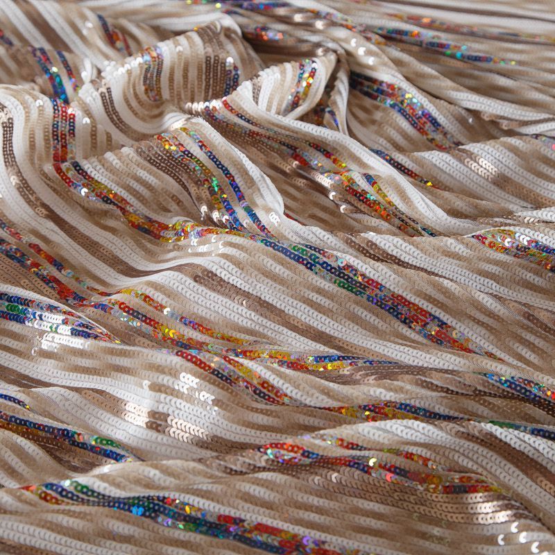 Пайетки на сетке 055-16492 бежевый/мультиколор в Казани