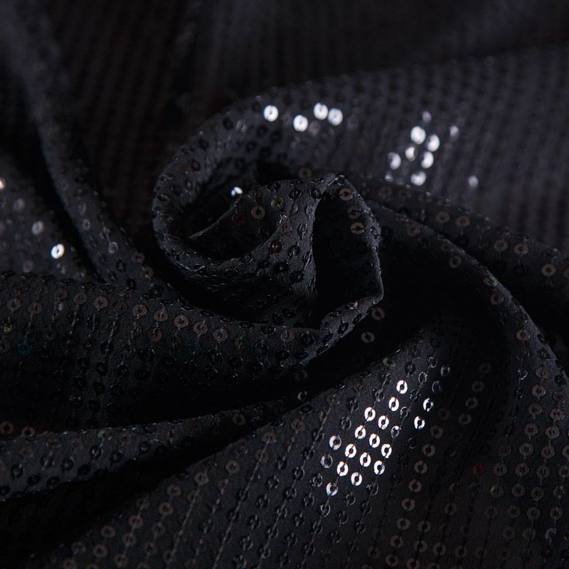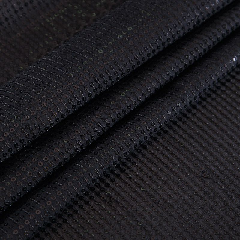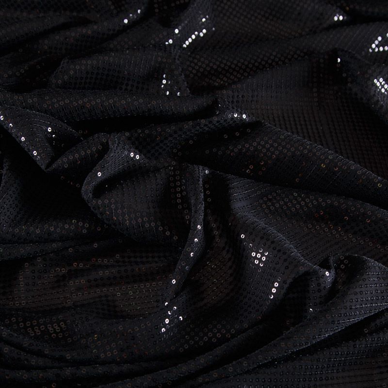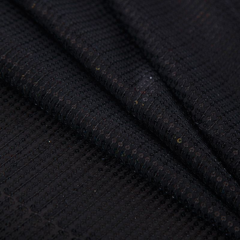 Итальянские черные мелкие пайетки на шелковой полупрозрачной основе. Может потребоваться подклад.
