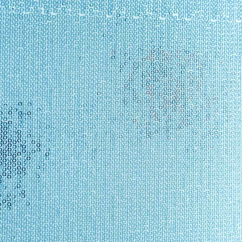 Блестящие пайетки в голубом оттенке. Мелкие, размером около 3 мм, расположены в хаотичном порядке. Основа - мягкая и эластичная сетка.  Ткань полупрозрачная, может потребоваться подклад. Подойдет для вечернего, коктейльного платья, юбки, нарядных детских изделий, танцевальных и сценических костюмов.
