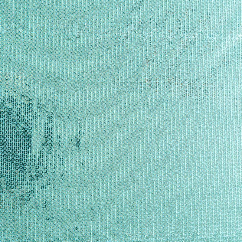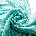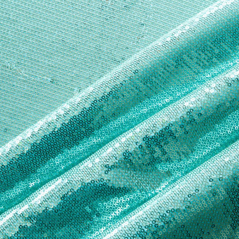 Блестящие пайетки в бирюзовом оттенке. Мелкие, размером около 3 мм, расположены в хаотичном порядке. Основа - мягкая и эластичная сетка.  Ткань полупрозрачная, может потребоваться подклад. Подойдет для вечернего, коктейльного платья, юбки, нарядных детских изделий, танцевальных и сценических костюмов.