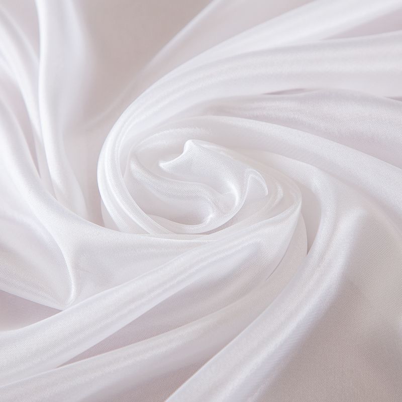 Перламутровый шифон — это разновидность шифона, отличающийся атласным, переливающимся блеском. Ткань легкая, струящаяся, не просвечивает, хорошо драпируется. Применяется в пошиве вечерних и свадебных платьев, блузок, юбое, сценических костюмов, одежды для спортивных бальных танцев, детских вещей, а также платков, шалей и прочих аксессуаров.