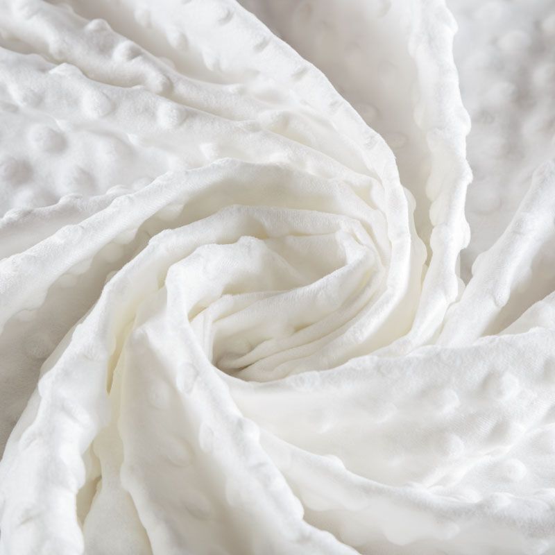 Мягкое, нежное, приятное на ощупь, с гладкой текстурой, красивым блестящим эффектом. Фактура – пузырьки. На лицевой стороне мягкий ворс 1 мм. Изнаночная сторона  — гладкое  трикотажное полотно без ворса. Используется  для пошива покрывал, пледов, одеял, бортиков в кроватку, конвертов для новорождённых, мягких игрушек, комбинезонов, пижам, домашней одежды, лежанок для домашних питомцев.