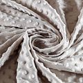 Мягкое, нежное, приятное на ощупь, с гладкой текстурой, красивым блестящим эффектом. Фактура – пузырьки. На лицевой стороне мягкий ворс 1 мм. Изнаночная сторона  — гладкое  трикотажное полотно без ворса. Используется  для пошива покрывал, пледов, одеял, бортиков в кроватку, конвертов для новорождённых, мягких игрушек, комбинезонов, пижам, домашней одежды, лежанок для домашних питомцев.