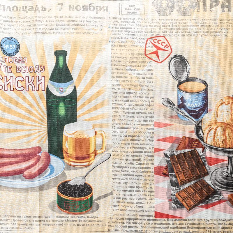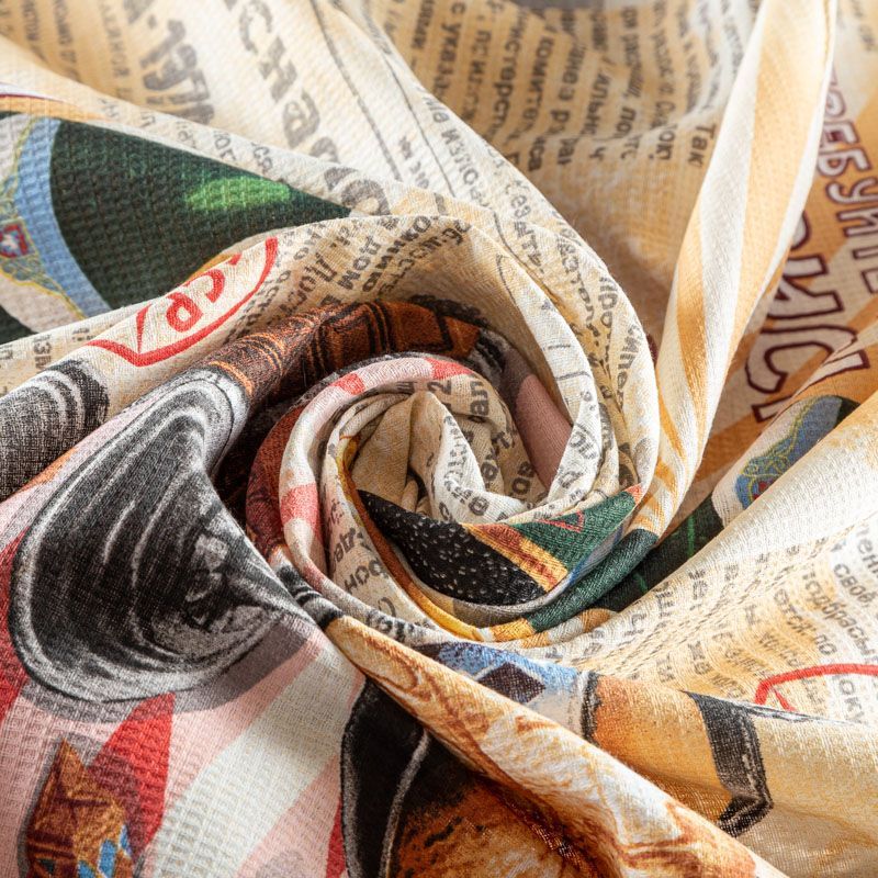 Качественная натуральная хлопчатобумажная ткань, обладающая высокой гигроскопичностью, с "газетным принтом". Универсальный материал, из которого шьют кухонные полотенца, скатерти, прихватки, салфетки.