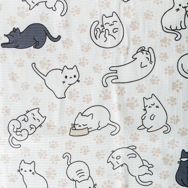 Качественная натуральная хлопчатобумажная ткань, обладающая высокой гигроскопичностью, с милым "кошачьим" принтом. Универсальный материал, из которого шьют кухонные полотенца, скатерти, прихватки, салфетки.