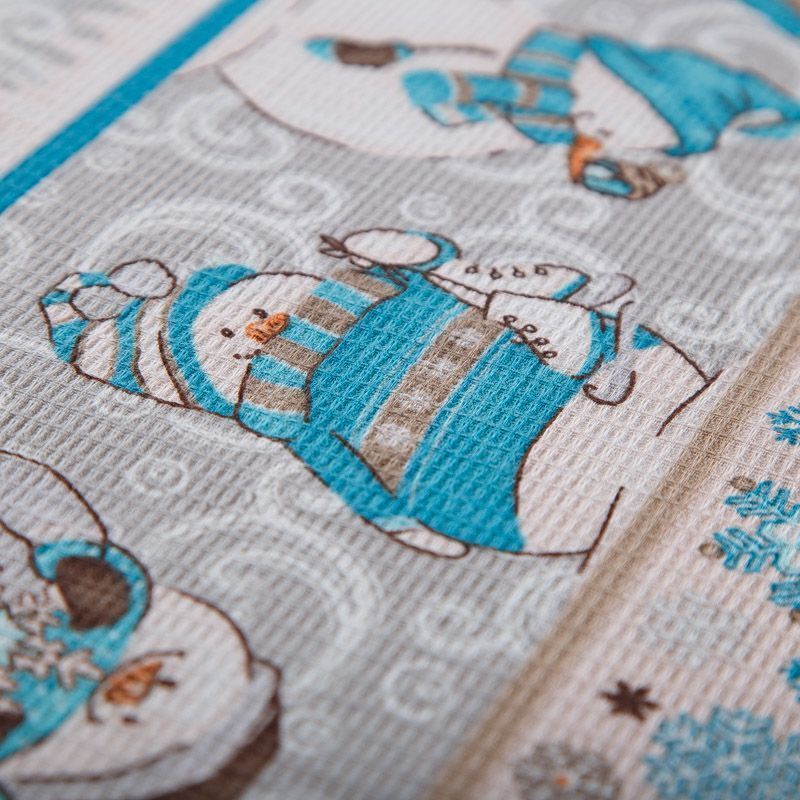 Полотно вафельное 007-15306 серо-голубой принтованный