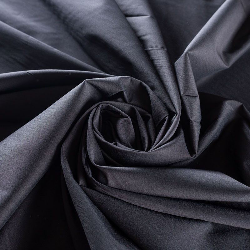 Однотонный плательно-рубашечный хлопковый поплин черного оттенка. Ткань лёгкая, слегка прозрачная, поверхность матовая, гладкая, приятная к телу, хорошо драпируется, тянется за счет эластана в составе. Прекрасно подойдет блузы, платья-рубашки, летнего сарафана, туники.