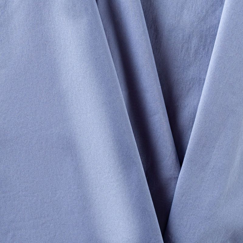 Однотонный плательно-рубашечный хлопковый поплин голубого оттенка. Ткань лёгкая, слегка прозрачная, поверхность матовая, гладкая, приятная к телу, хорошо драпируется, тянется за счет эластана в составе. Прекрасно подойдет блузы, платья-рубашки, летнего сарафана, туники.