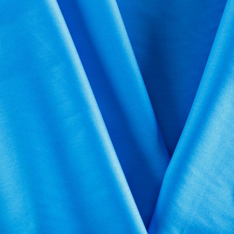 Плательно-рубашечный хлопок синего оттенка. Ткань лёгкая, непрозрачная, поверхность матовая, гладкая, приятная к телу, хорошо драпируется, тянется за счет эластана в составе. Прекрасно подойдет блузы, платья-рубашки, летнего сарафана, туники.