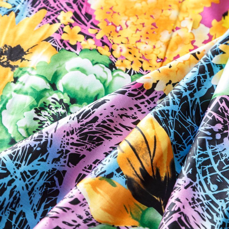 Итальянский плательно-рубашечный хлопок сатинового плетения крупным ярким принтом. Ткань лёгкая, непрозрачная, поверхность матовая, гладкая, приятная к телу, хорошо драпируется. Прекрасно подойдет блузы, платья-рубашки, летнего сарафана, туники, домашней одежды.