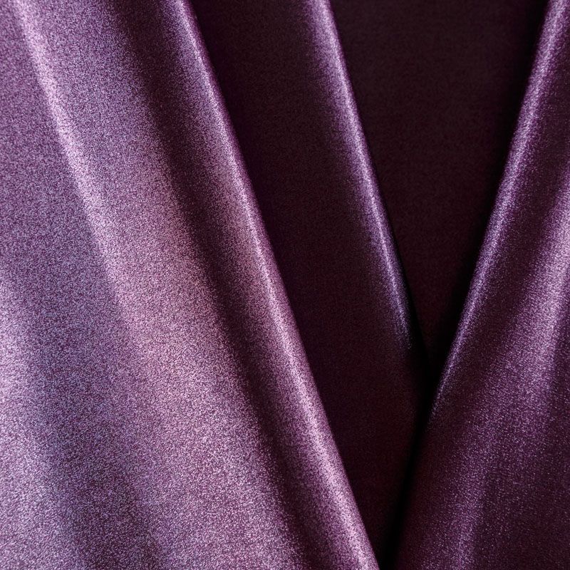 Итальянский сатин-коттон средней плотности в ежевично-сливовом оттенке с содержанием люрексовой нити. Поверхность ткань слегка шероховатая, с искрящимся блеском. Материал хорошо держит форму и драпируется, тянется за счет эластана в составе. Подойдет для пошива нарядных костюмов, платьев, жакета, юбки, брюк или шорт.