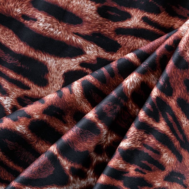 Итальянский сатин-коттон с анималистическим принтом в природных оттенках. Поверхность гладкая со сдержанным блеском, ткань средней плотности, не толстая, хорошо держит форму, тянется за счет эластана в составе. Подойдет для пошива костюма, жакета, юбки, платья, брюк или шорт.