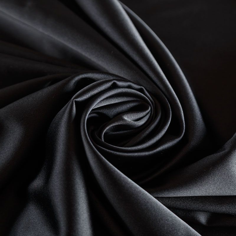 Пластичная ткань средней плотности с характерным сатиновым плетением, драпируется мягкими, красивыми складками, струится по фигуре, эластичная, поверхность имеет благородный сдержаный блеск. Роскошный сатин идеален для пошива нарядных и повседневных платьев, костюмов, брюк, юбок, бомберов.