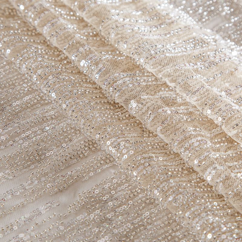 Сетка с бисером и пайетками 050-17618 экрю в Казани