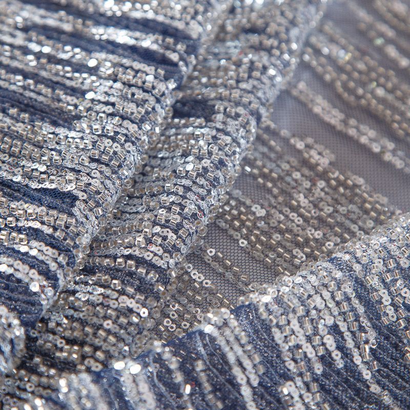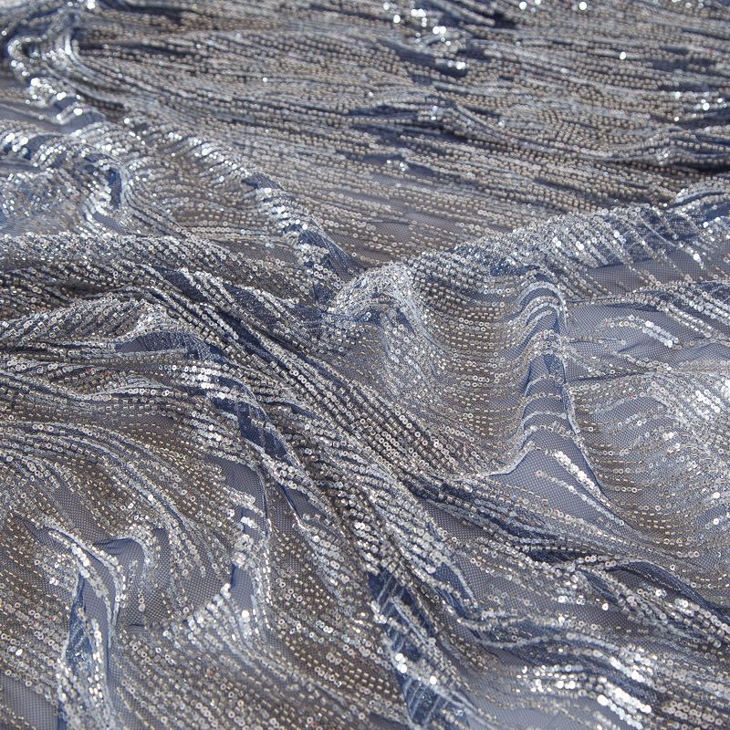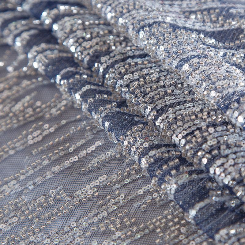 Сетка с бисером и пайетками 050-17746 синий в Казани