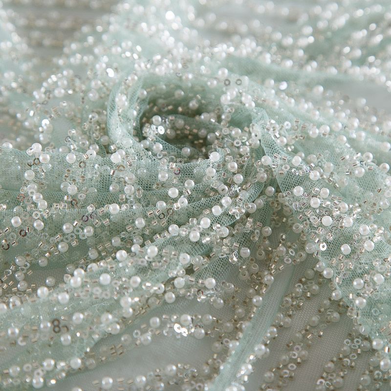 Сетка с бисером и пайетками 050-17747 мятный в Казани