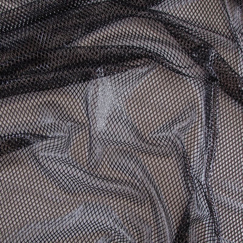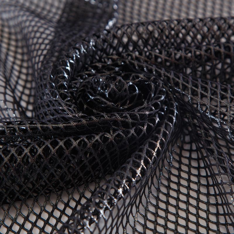 Рельефный полупрозрачный материал с сетчатой структурой. Поверхность полотна с металлизированным напылением, которое придает материалу легкий блеск и мерцание. Полотно мягкое, растяжимое во всех направлениях. Сетки нашли свое применение в процессе пошива и последующего декора вечерних нарядов, свадебных платьев, спортивной одежды, театральных костюмов.