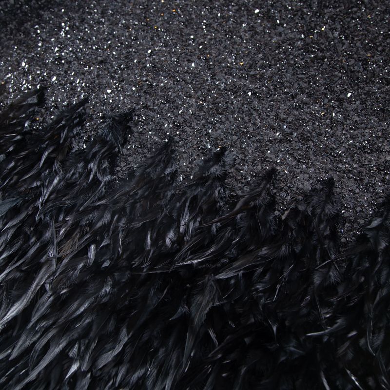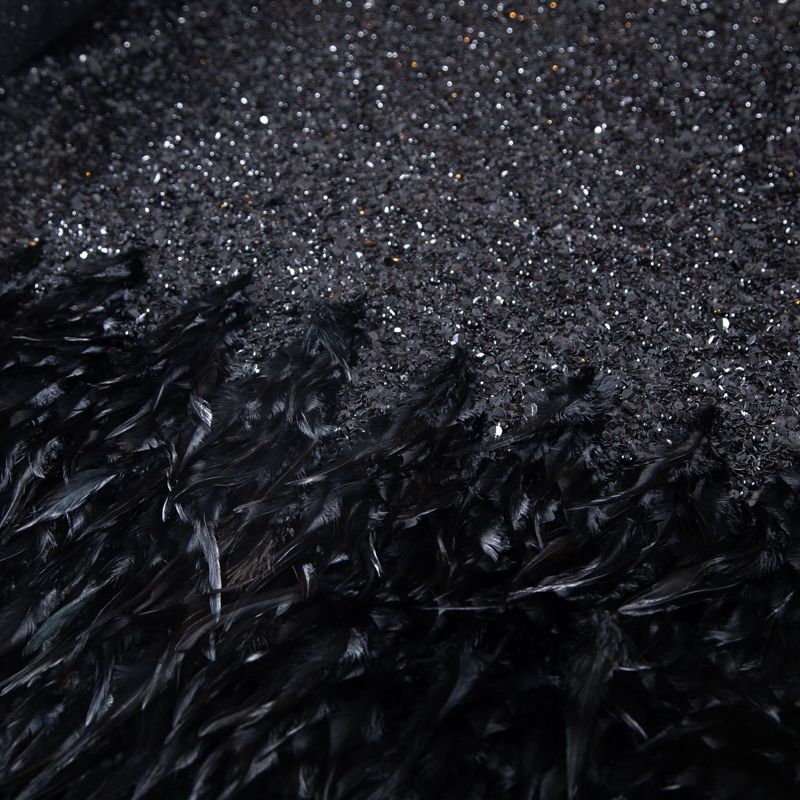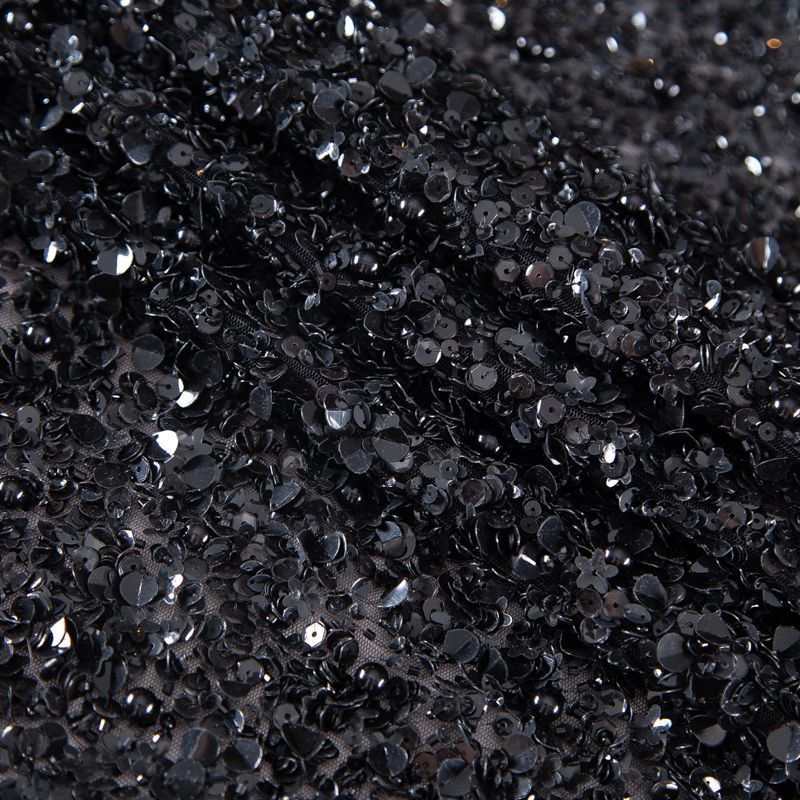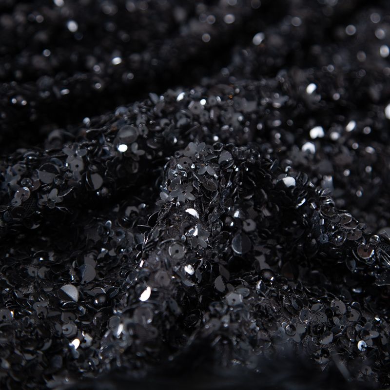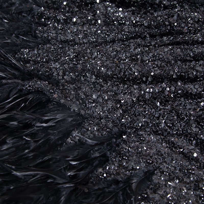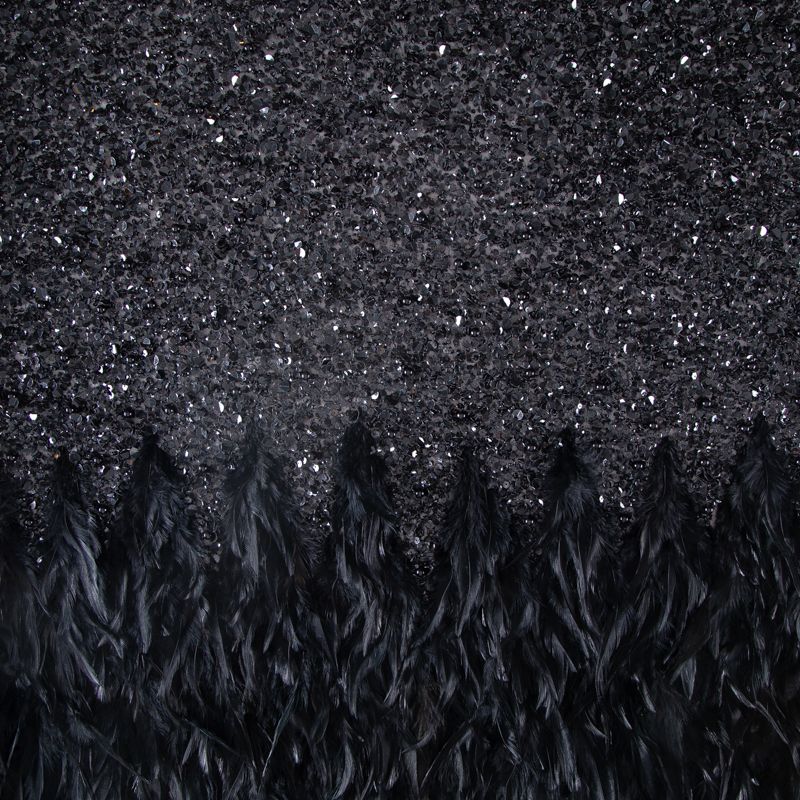 Эксклюзивная и лимитированная по количеству итальянская позиция для пошива нарядных образов! Эластичная сетчатая основа очень густо расшита черными глянцевыми пайетками, что обеспечивает непрозрачность полотна. Ширина полосы с роскошным густым черным пером около 40-45 см от нижней кромки, это позволяет экспериментировать с кроем для пошива различных изделий. Набирается на изделие объемом.