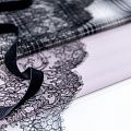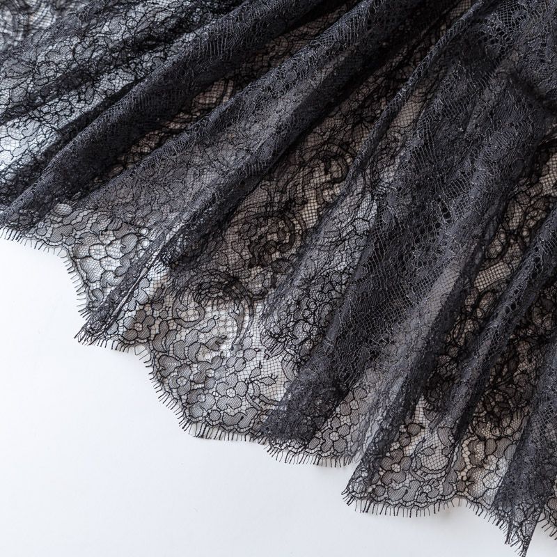 Французское шантильи черного цвета имеет тончайшее плетение волокон и состоит из нежнейшего кружева, которое используется для пошива свадебных нарядов, праздничных платьев. Вставки из кружева украсят любой офисный костюм, повседневное платье, юбку, блузу. Обе кромки кружева украшены фигурными фестонами.