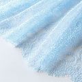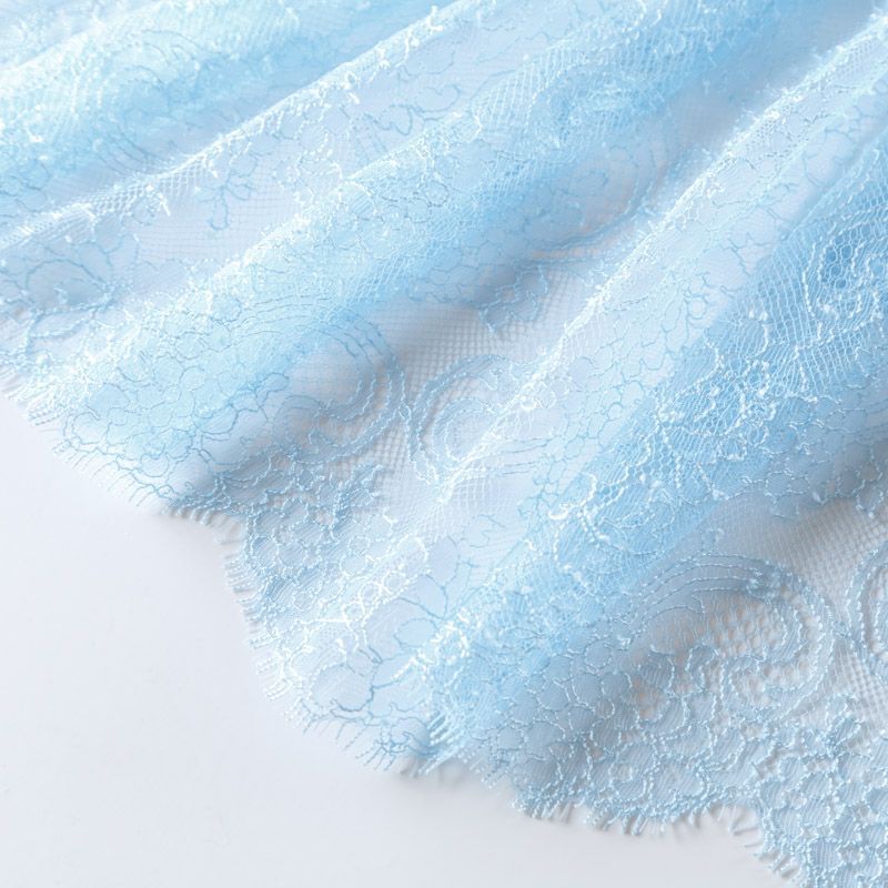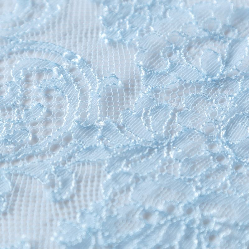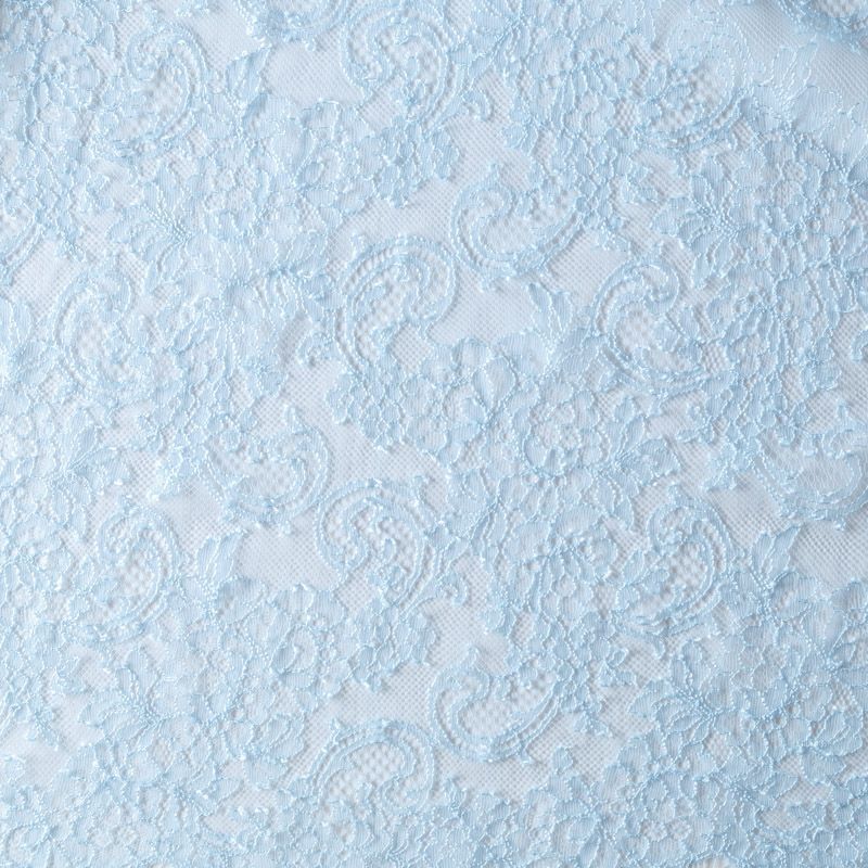 Французское шантильи разбеленного голубого оттенка имеет тончайшее плетение волокон и состоит из нежнейшего кружева, которое используется для пошива свадебных нарядов, праздничных платьев. Вставки из кружева украсят любой офисный костюм, повседневное платье, юбку, блузу. Обе кромки кружева украшены фигурными фестонами.