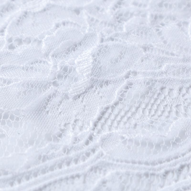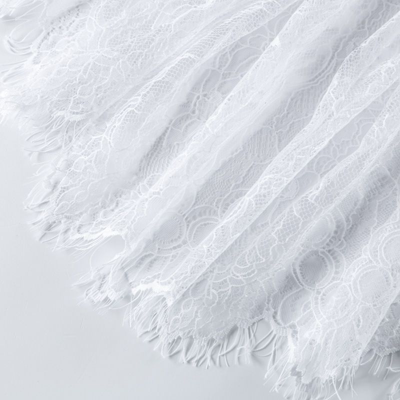Французское шантильи белого цвета имеет тончайшее плетение волокон и состоит из нежнейшего кружева, которое используется для пошива свадебных нарядов, праздничных платьев. Вставки из кружева украсят любой офисный костюм, повседневное платье, юбку, блузу. Обе кромки кружева украшены фигурными фестонами. Наирается на изделие объемом.