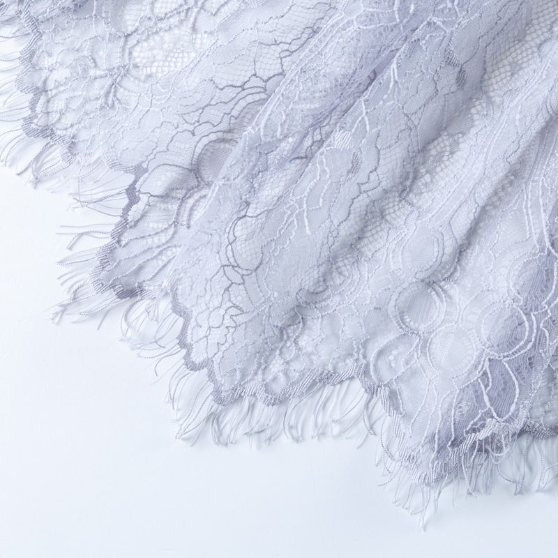 Французское шантильи светло-серого оттенка имеет тончайшее плетение волокон и состоит из нежнейшего кружева, которое используется для пошива свадебных нарядов, праздничных платьев. Вставки из кружева украсят любой офисный костюм, повседневное платье, юбку, блузу. Обе кромки кружева украшены фигурными фестонами. Наирается на изделие объемом.