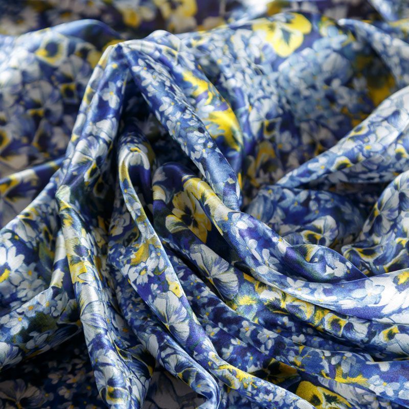 Шелк-батист натуральный К18-190 синий принтованный в Казани