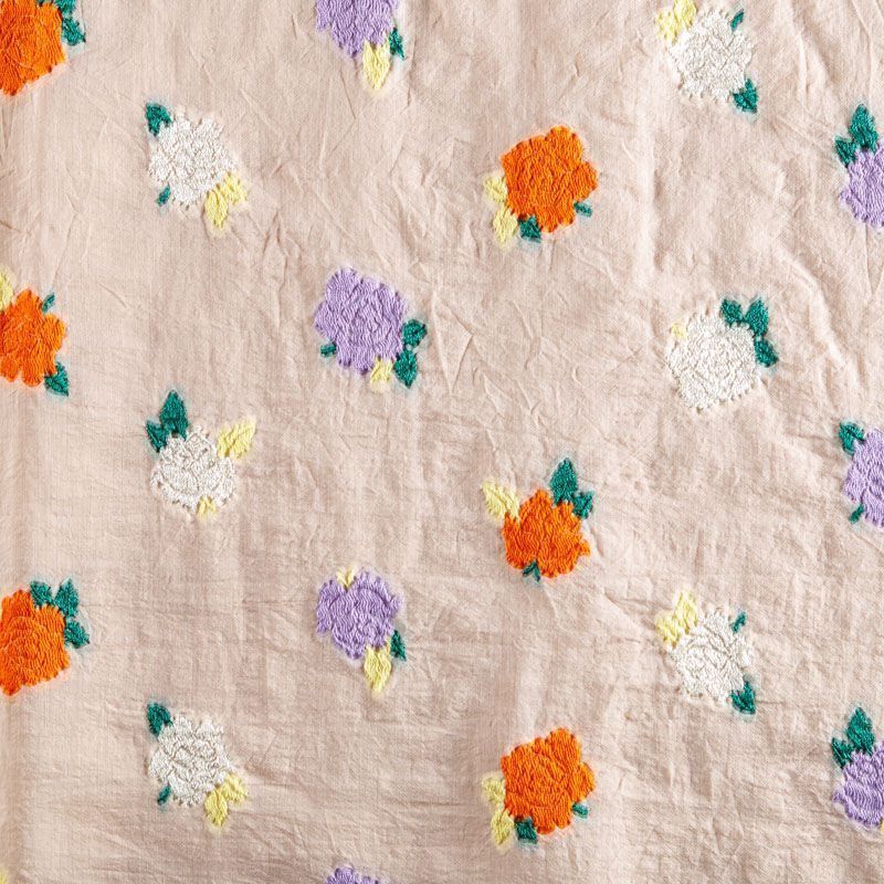 Очень красивый и нежный шелковый батист с цветочной вышивкой. Ткань тонкая, мягкая и легкая, но достаточно плотная, не очень прозрачная, ее прикосновения к телу очень приятны, в изделии из него будет комфортно как в жару, так и в прохладную погоду. Лицевая сторона гладкая, с легким сатиновым блеском. Прекрасно подойдет для пошива летнего сарафана, платья, блузки, топа, туники, костюма в пижамном стиле, широких брюк или юбки.