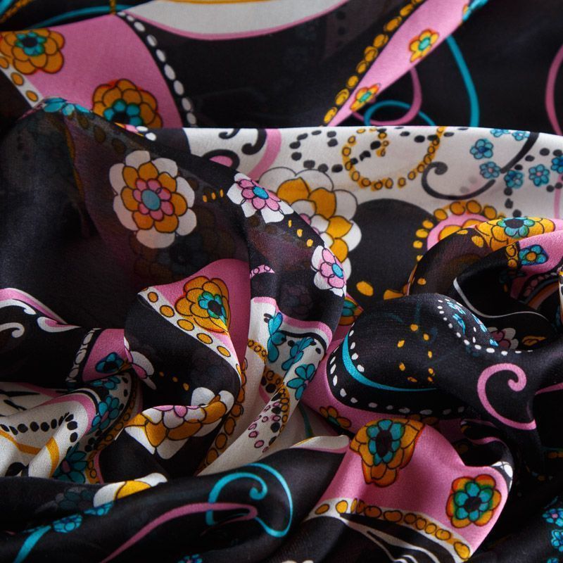 Шелк натуральный 064-12345 черный принтованный в Казани