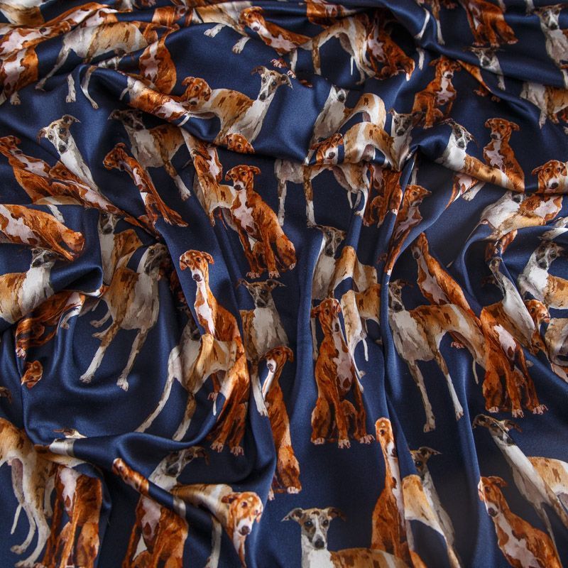 Шелк натуральный 064-14725 темно-синий принтованный в Казани