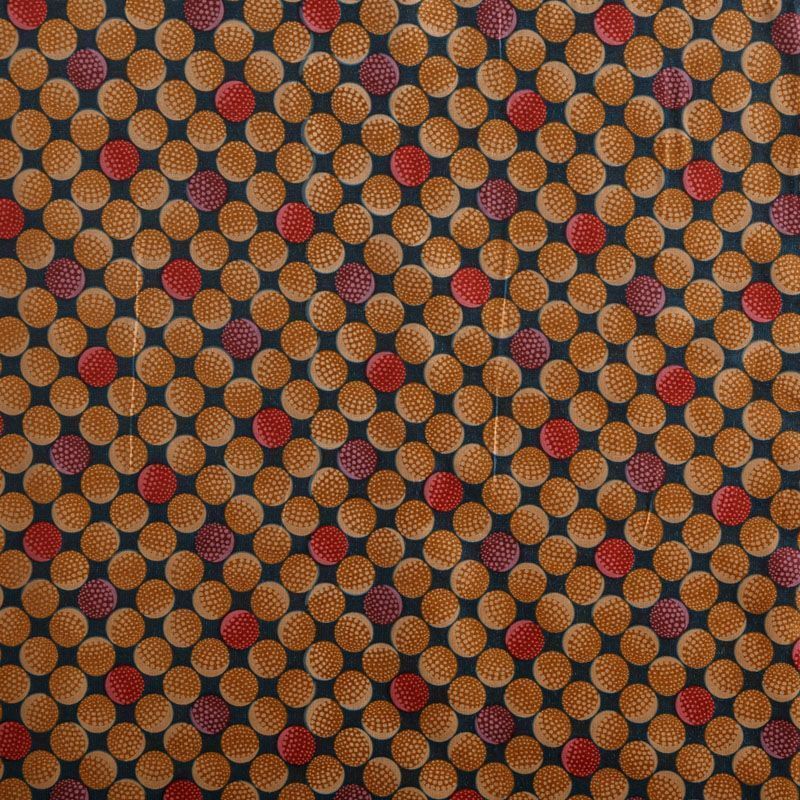 Итальянский атласный шелк с геометрическим принтом в карамельно-красных оттенках. Ткань тонкая, не просвечивает, отлично драпируется, легкая и струящаяся. Идеально подойдет для пошива платьев и сарафанов расклешенных моделей, с воланами, летящих юбок, топов, блузки, костюма в пижамном стиле.