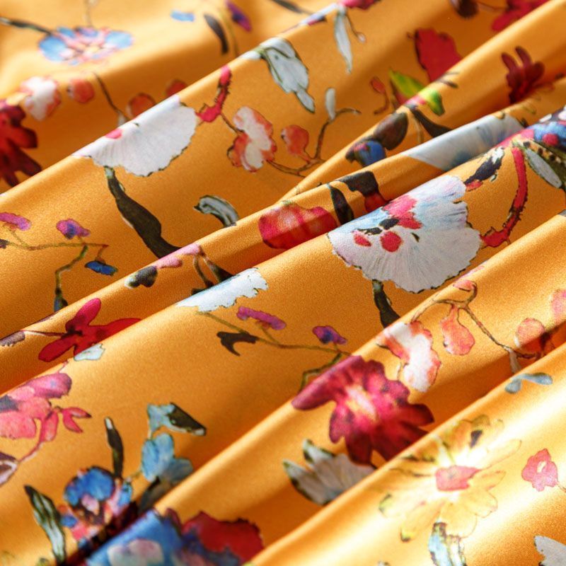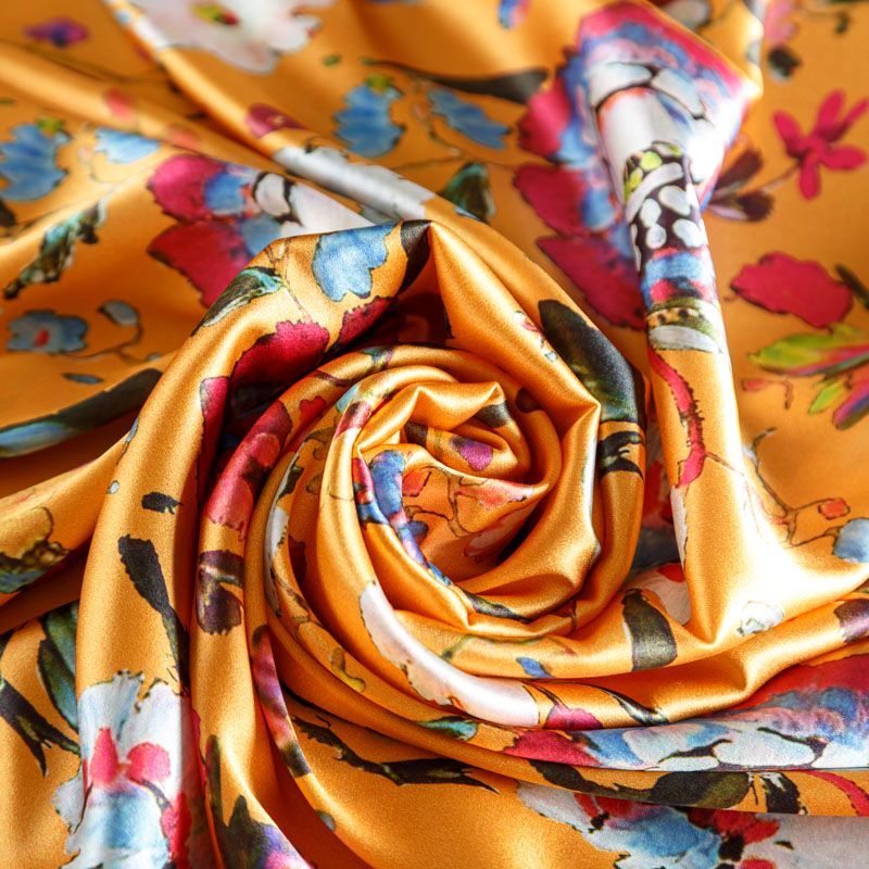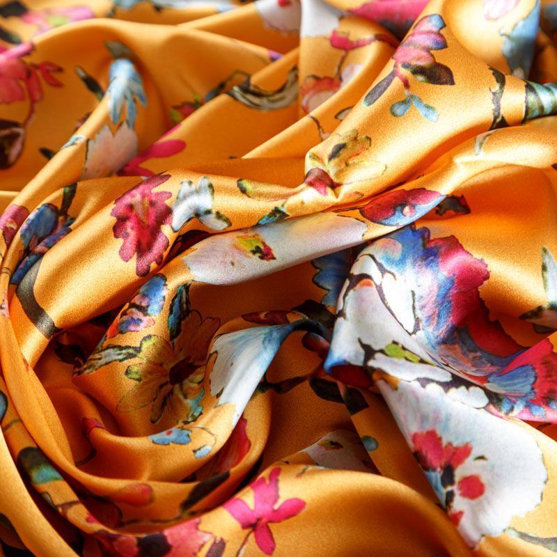 Шелк натуральный К01-302 апельсиновый принтованный в Казани