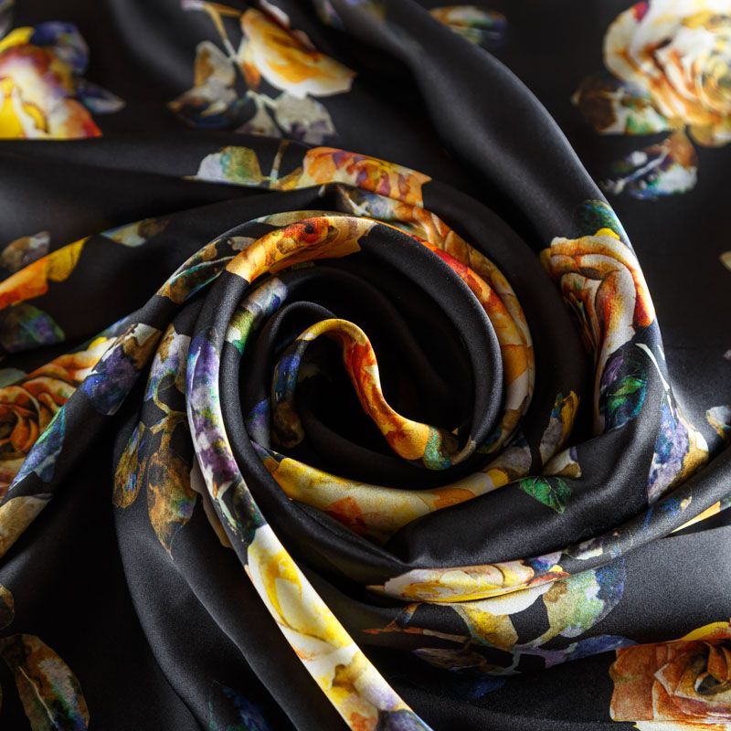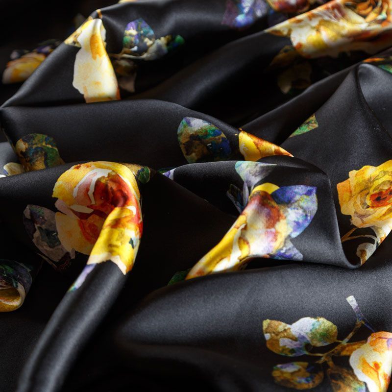 Шелк натуральный К08-115 черный принтованный в Казани