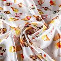 Натуральный шелк с атласной поверхностью, легкий, струящийся, хорошо драпируется. "Вкусный" принт выполнен в ярких оттенках, который будет уместен для пошива летнего сарафана, платья, блузки, костюма в пижамном стиле, широких брюк или юбки.