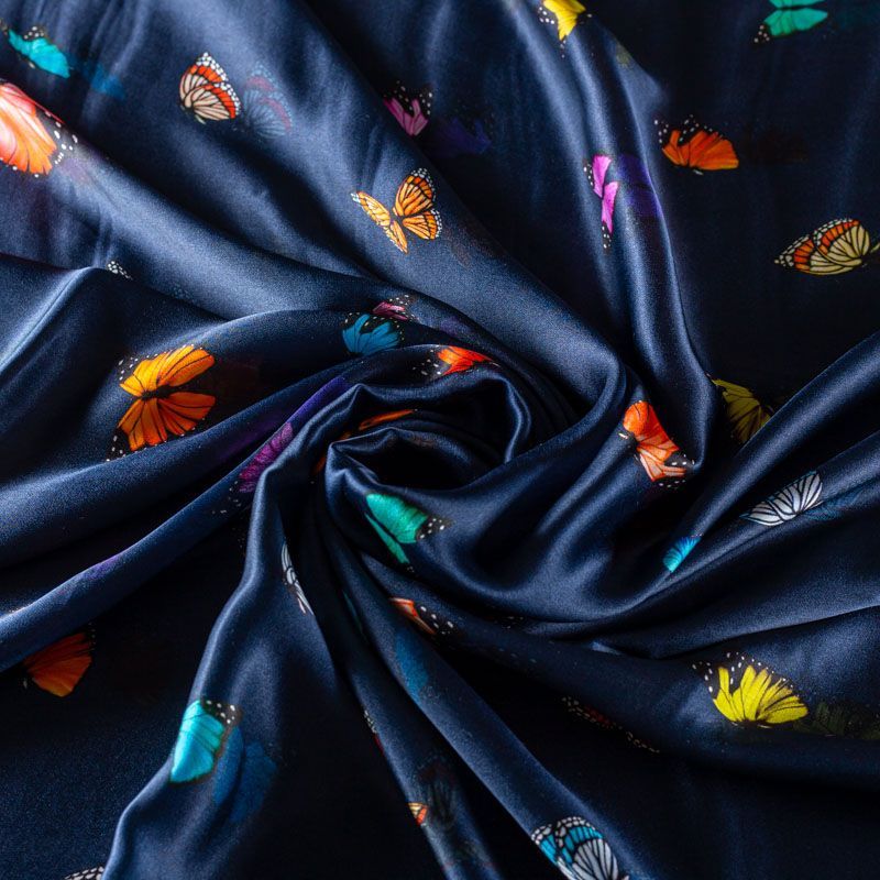 Шелк натуральный К13-913 темно-синий принтованный в Казани