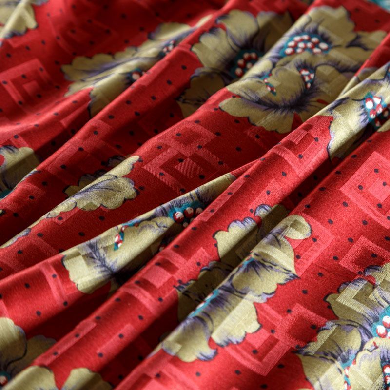 Итальянский купонный матовый шелк с жаккардовым узором, тонкий, не прозрачный, отлично драпируется, легкий и струящийся. Идеально подойдет для пошива платьев и сарафанов расклешенных моделей, с воланами, летящих юбок, топов, блузки, костюма в пижамном стиле.