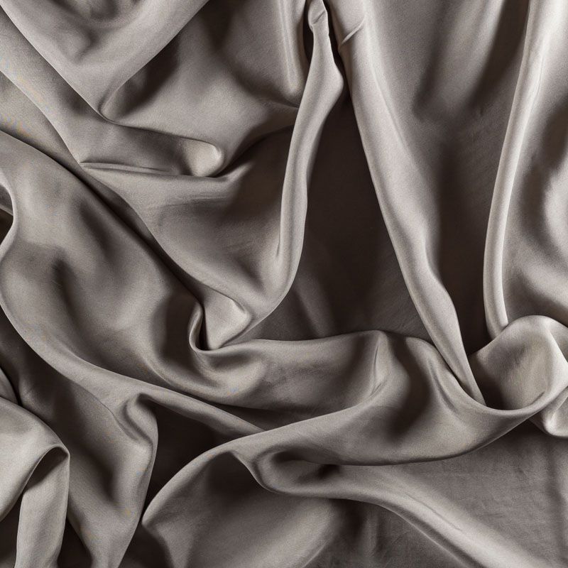 Итальянский матовый шелк нежного серого оттенка, тонкий, слегка прозрачный, отлично драпируется, легкий и струящийся с креповой поверхностью. Идеально подойдет для пошива платьев и сарафанов расклешенных моделей, с воланами, летящих юбок, топов, блузки, костюма в пижамном стиле.
