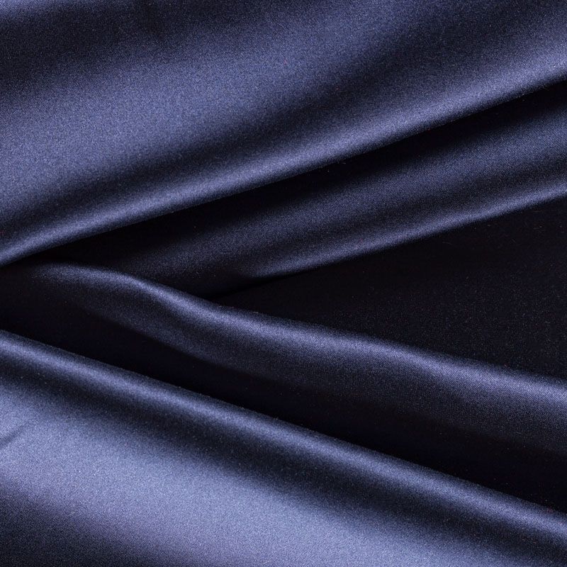 Блузочно-плательный атласный шелк с эластаном глубокого синего цвета. Невесомая гладкая ткань приятно прилегает к телу, дарит ощущение прохлады и нежно струится. Небольшой процент эластана делает материал упругим и растяжимым. Ткань не просвечивает, идеально подойдет для платья, блузки, рубашки, шелкового топа, юбки, актуальна для пижамы и комбинации.