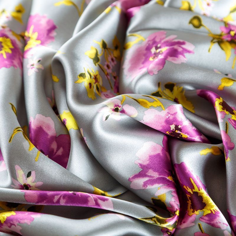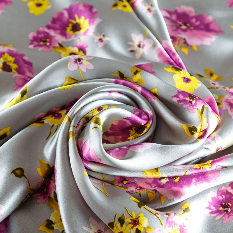 Шелк натуральный К15-381 серо-стальной принтованный в Казани